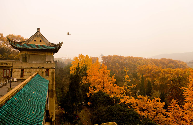 武汉大学秋色樱园 飞鸟迎秋 张然摄
