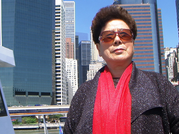 除了写作,她还有一个爱好,就是“行万里路”,近的如香港澳门台湾,远的如欧洲列国和美国,都被外婆转了个遍。王潇说,身体和灵魂,至少要有一个在路上,外婆说,她要贪心一点,“身体和灵魂,一个都不能少,都要在路上”。而在路上的心态,让她的饱满的求知欲得以充实绵延。(背景为美国国贸大厦)