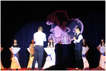 图为活动现场男嘉宾回答女嘉宾的问题(实习生 张怡婷摄)