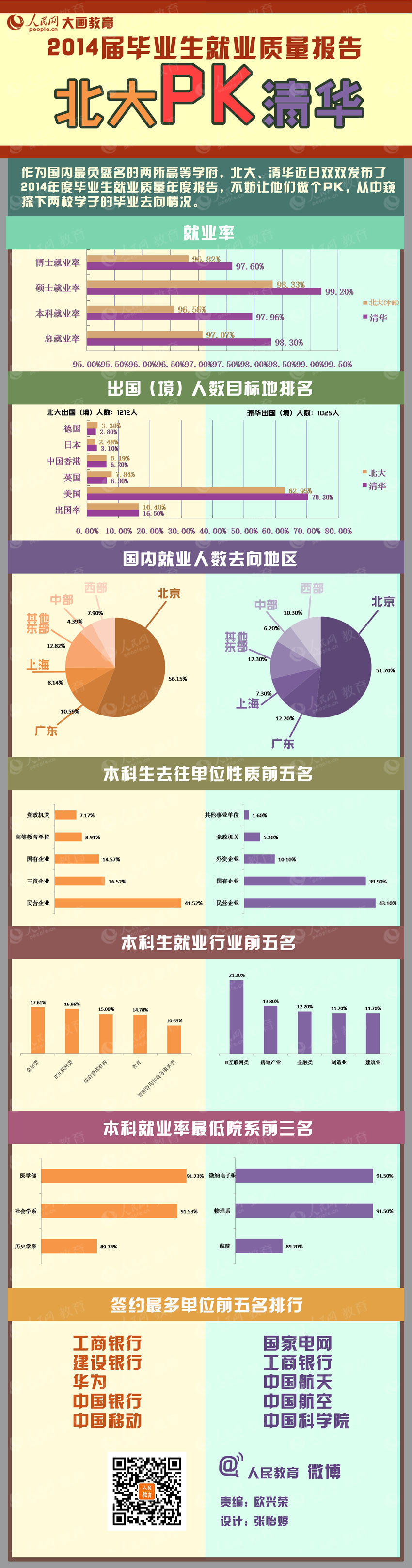 伟德国际1946bv官网北京1月7日电(欧兴荣 实习生张怡婷)作为中国最负盛名的两所高等学府,北大、清华两校及学子的动向备受社会关注,近日两校发布的2014年毕业生就业质量年度报告显示,不妨让它们做个PK,看看到底哪家强?!