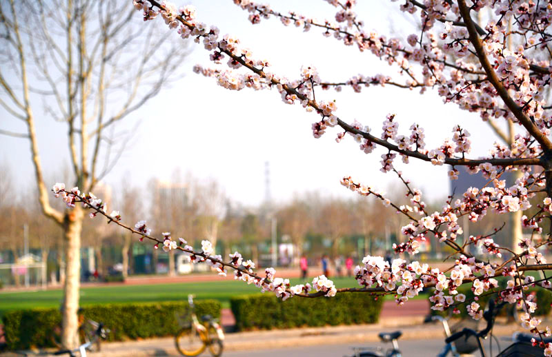 足球场上的一抹淡粉 (清华大学杨可摄影)