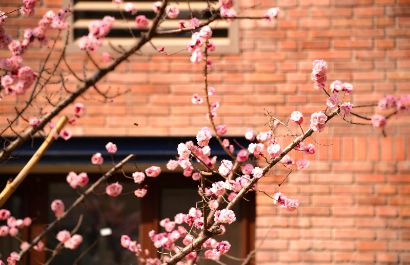 宿舍窗下,一枝红杏 (清华大学杨可摄影)