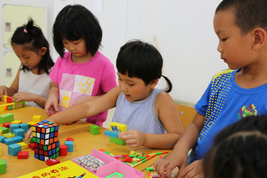 一年级的学生注意力时间是有限的,学校将课堂学习时间缩减为35分钟,全体教师精心设计教学环节,增强生活化与互动性,关注课堂的学习质量。同时,引领教师开展课中操研究,促进孩子合理科学用脑,适当休息。如数学学科结合学习内容增加数字歌、思维游戏等。这既促进了课堂教学实效的提升,更尊重了儿童身心发展规律的具体体现。