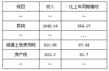 表 2013年1~6月全国主要税收收入表(单位:亿元)