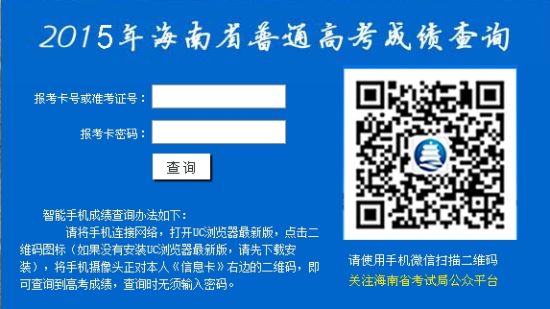海南2015年高考成绩发布,查询地址已开通。考生可点击进入查询。(林露 王李)