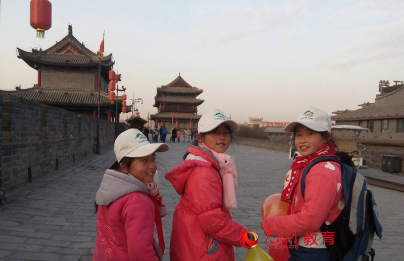 我利用寒假带着他们来到西安。孩子们第一次走出大山,第一次登上了古城墙。