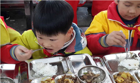 之后,学生们又在操场上做起感恩操。“孩子们都应有一颗感恩的心,要学会感恩父母、感恩老师、感恩社会、感恩国家。”永和小学校长陈绍武说,现在国家的政策非常好,孩子们每天的免费午餐都有两菜一汤。教育局每学期还组织营养培训,老师经过培训,再和食堂工人一起制定食谱,尽量做到荤素搭配,既要让学生吃得饱,又要让学生吃得好。