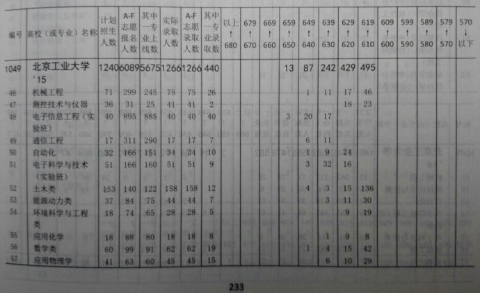 为了更好地理解大厚书,笔者把大厚书上所有栏目分十个要点做一下解释。由于已经实行了考后大平行志愿的2015年的数据参加价值最高,我们以2015年北京工业大学的录取数据为例: