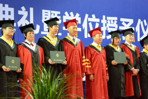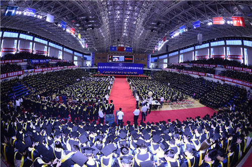 四年里,同学们和东北大学一同成长。学校首个2011协同创新中心获批、浑南新校区建设、学科调整和优化、重大科技项目突破、人才培养模式改革、创新创业基地拓展……我们共同的信念,是希望同学们能够飞得更高、走的更远。在你们中间,有李砚浓同学这样获得国外九所名校OFFER的“学霸”,有秦诗悦、王海洋同学这样的创业之星,有尹璐同学这样在物理学顶级杂志上发表学术论文的科研达人,也有刘莉同学这样带着母亲上大学的道德模范。你们在座的每一位,都有一段值得母校骄傲的经历,如同群星闪烁,点亮了学校深邃而壮阔的天空。母校感谢你们,并为你们的成熟感到无比的欣慰和自豪!