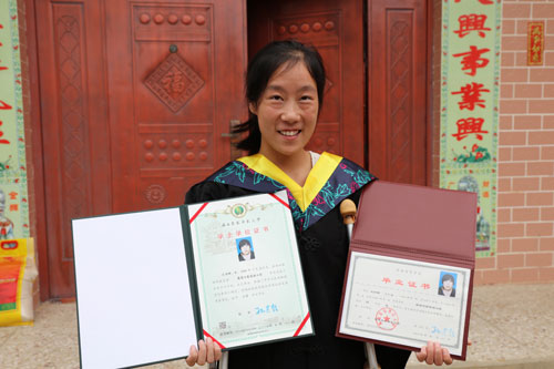 面对着这张来之不易的学位证,王功娜喜极而泣,她说:“虽然我遭受了不幸,可我又是幸运的,在休学这么长时间里,学校学院的老师一直惦记我,复学后又为我开小灶设计个性化学习方案,鼓励我将学业读完,我一定会用这学校对我的这份大爱之心,鼓舞自己迎难而上,用大爱照亮未来的前进道路!”