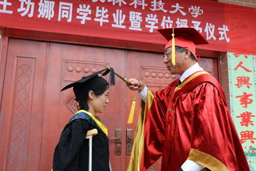 2016年毕业季,孙其信校长为全校5252名本科毕业生和338名博士毕业生以及2113名硕士毕业生亲手拨穗并授予学位证书,当然,他也没有忘记无法亲临毕业典礼现场的王功娜。
