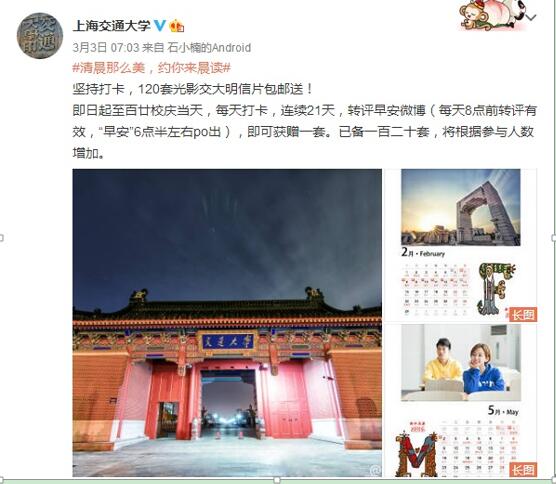 图7:@上海交通大学 #清晨那么美,约你来晨读#栏目截图