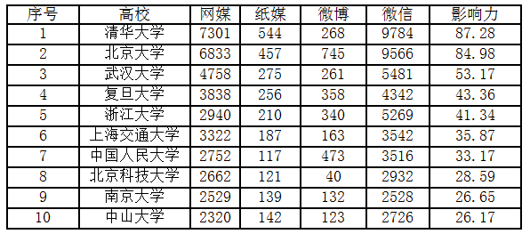 2015—2016中国高校社会影响力排行榜(四):高校网络舆论影响力排名