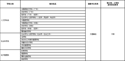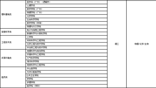 中山大学2017年自主招生学科大类划分