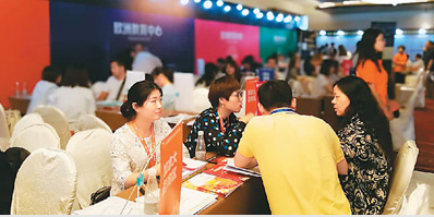 图为日前在启德教育集团举行的教育展上,家长在现场咨询。
