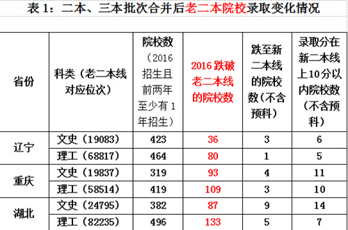 2、批次合并后各省都会有极少数老二本院校的录取分直接跌到新二本线上(相当于原三本线)。