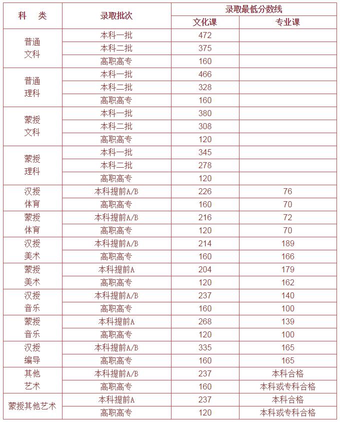 (表格来源:内蒙古自治区教育招生考试中心微信公众号)