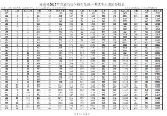 伟德国际1946bv官网北京6月25日电(赵英梓 实习生方萌萌)安徽教育考试院最新公布2017年普通高考文科成绩分段统计表,详细如下:
