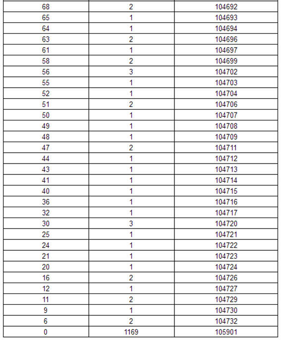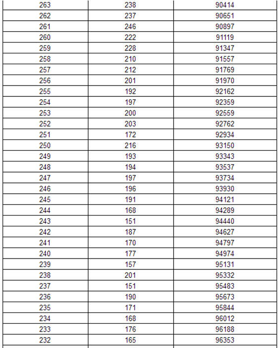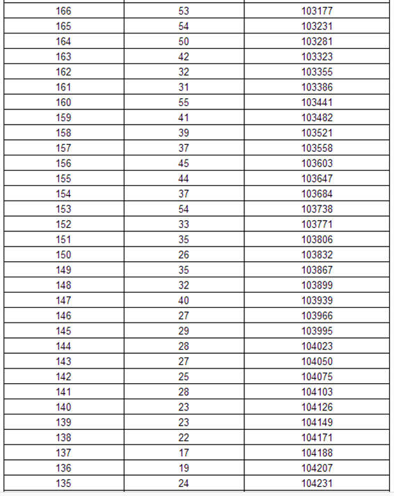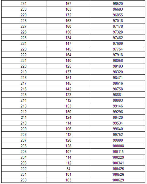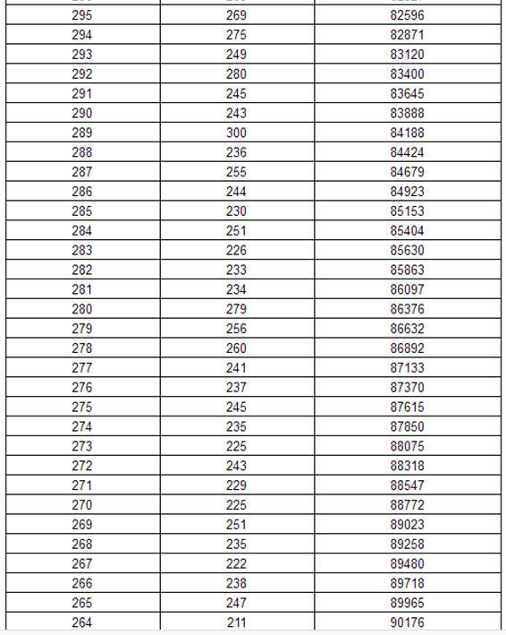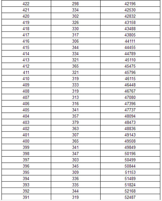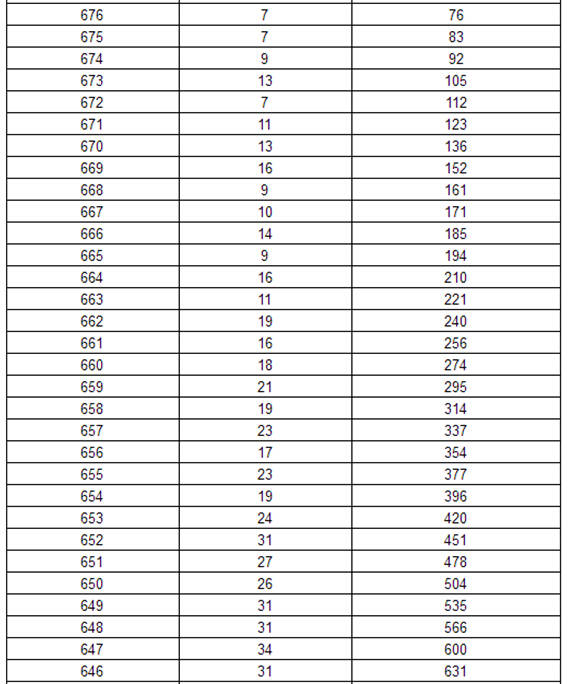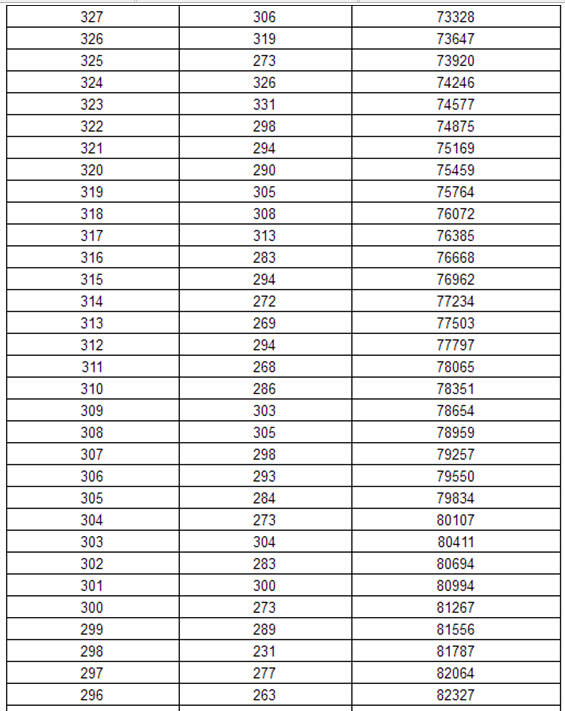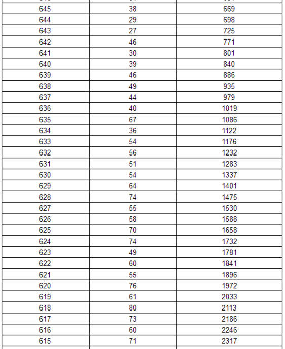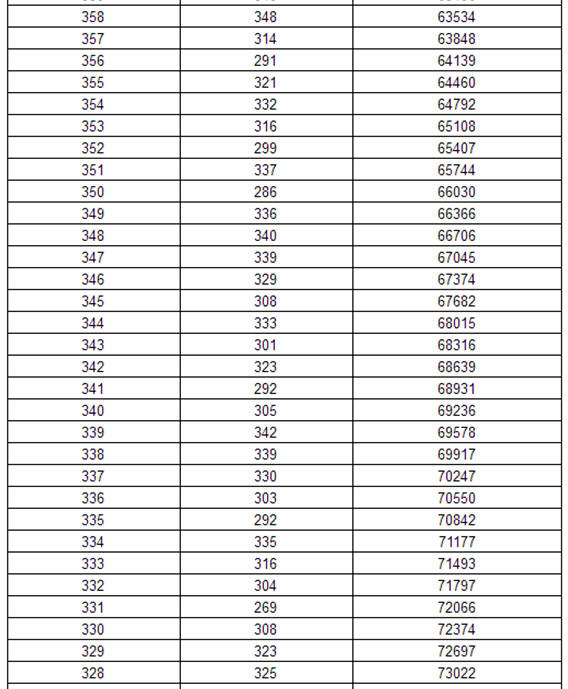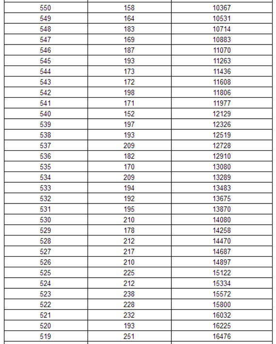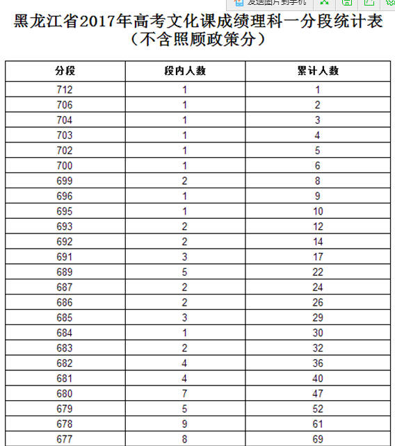 2017年黑龙江省普通高考理科类分数段统计表详细如下: