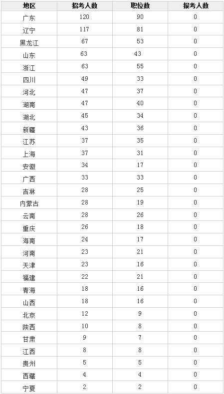 从目前各省无人报考职位来看,广东、辽宁、黑龙江、山东、浙江等地的无人报考职位占据前五名,这五个省份无人报考职位数占整体数量的37.8%。