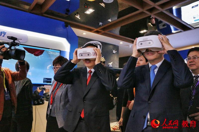 钟登华、吴岩等现场体验虚拟仿真技术。摄影卢静
