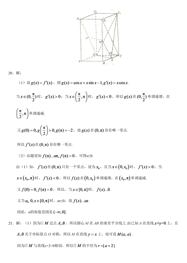2019年全国卷Ⅰ文科数学高考试题答案【3】