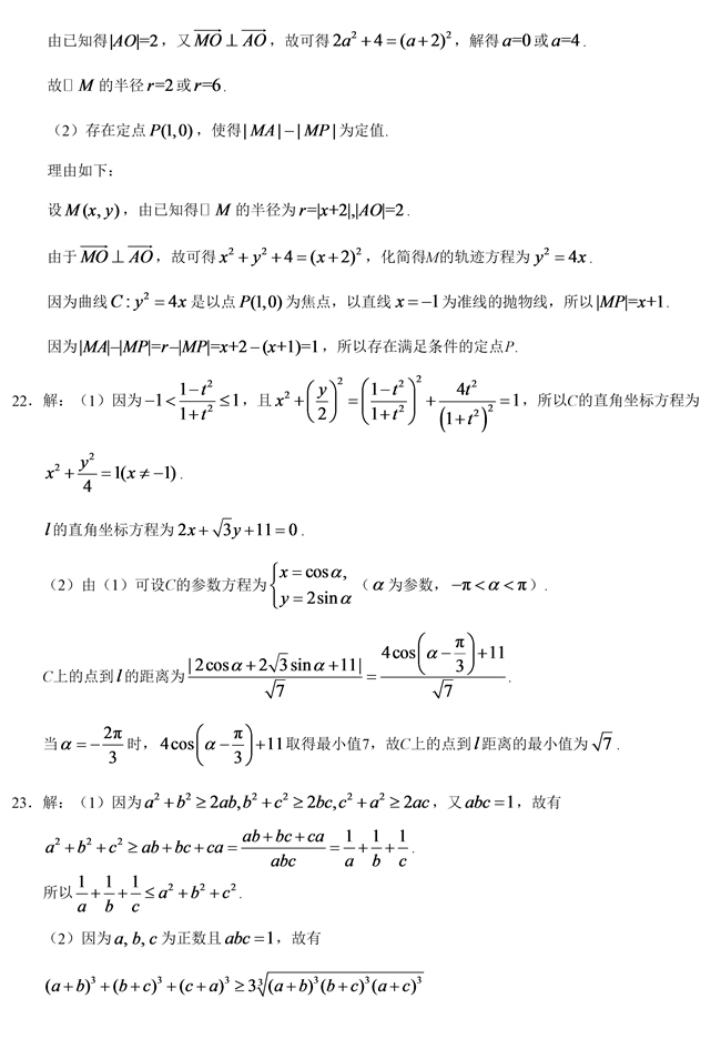 2019年全国卷Ⅰ文科数学高考试题答案【4】