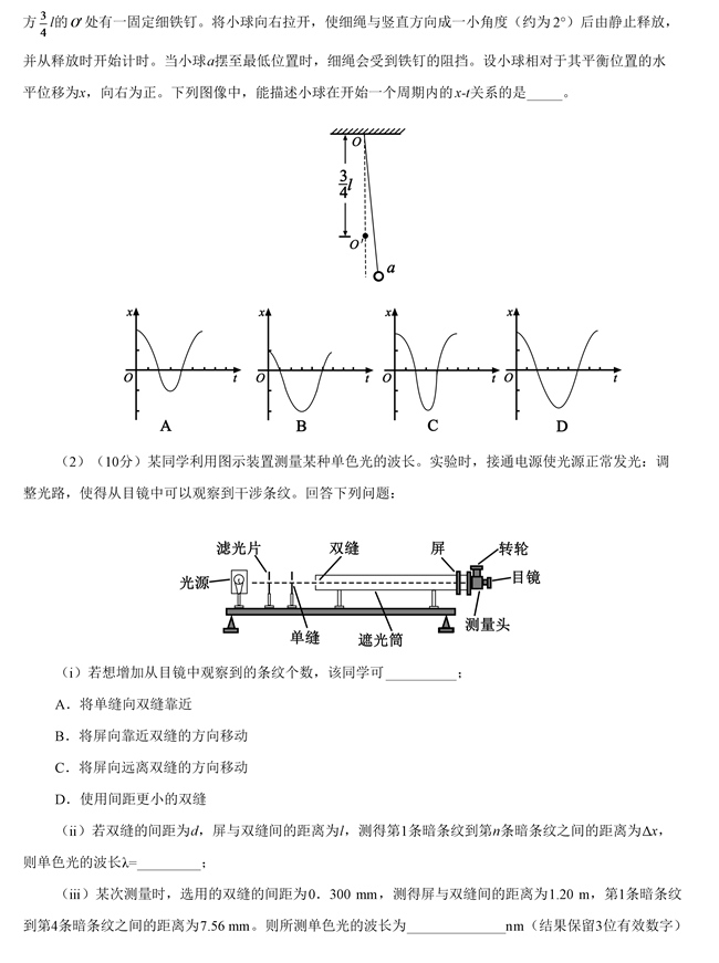 2019年全国卷Ⅱ理综高考试题【16】