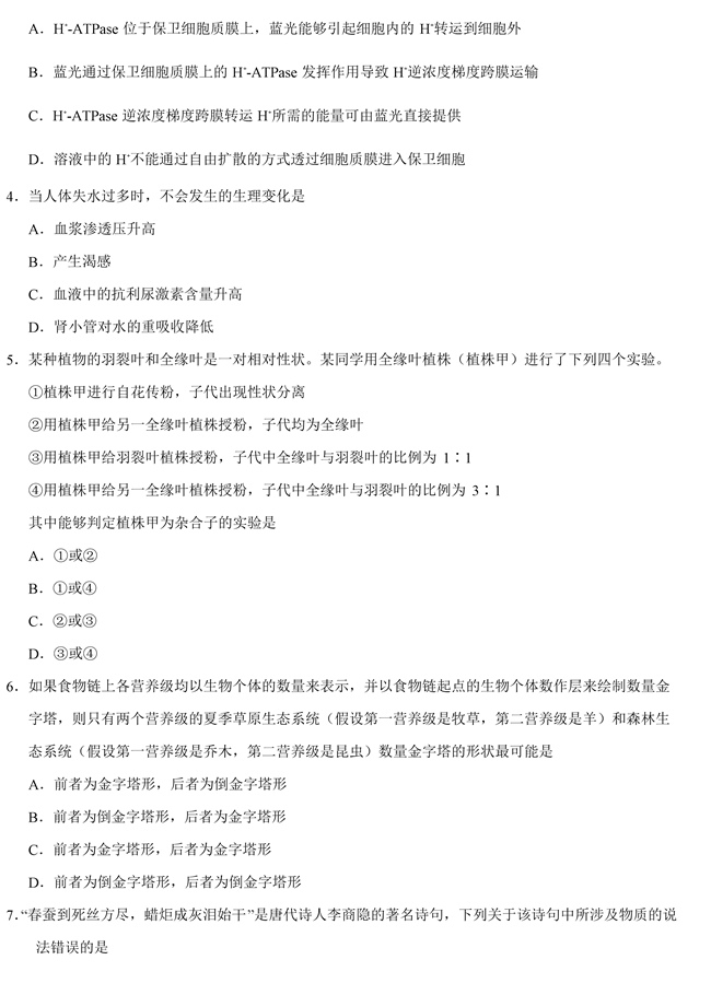 2019年全国卷Ⅱ理综高考试题【2】