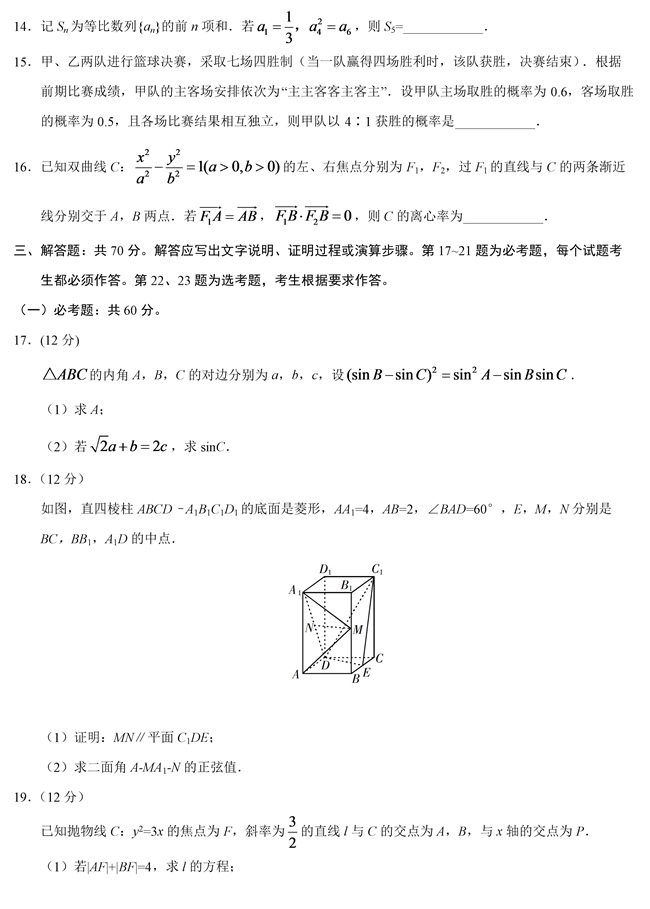 2019年全国卷Ⅰ理科数学高考试题【4】