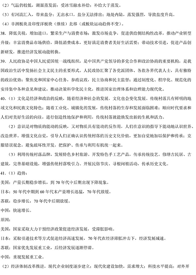 2019年全国卷Ⅰ文综高考试题答案【2】