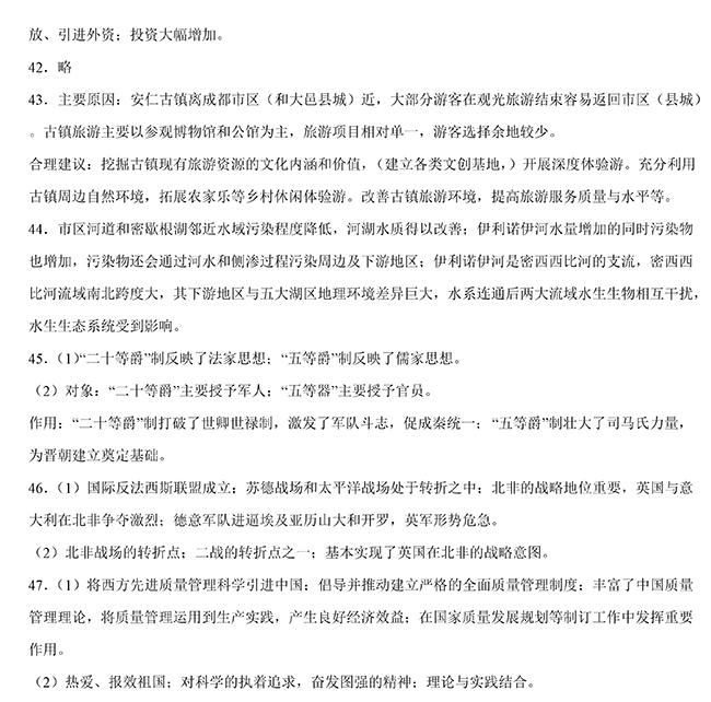 2019年全国卷Ⅰ文综高考试题答案【3】