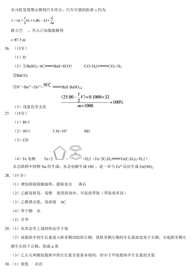 2019年全国卷Ⅱ理综高考试题答案【3】
