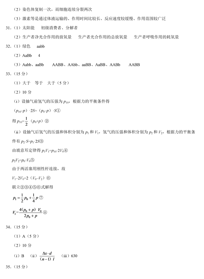 2019年全国卷Ⅱ理综高考试题答案【4】
