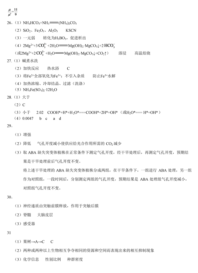 2019年全国卷Ⅰ理综高考试题答案【3】