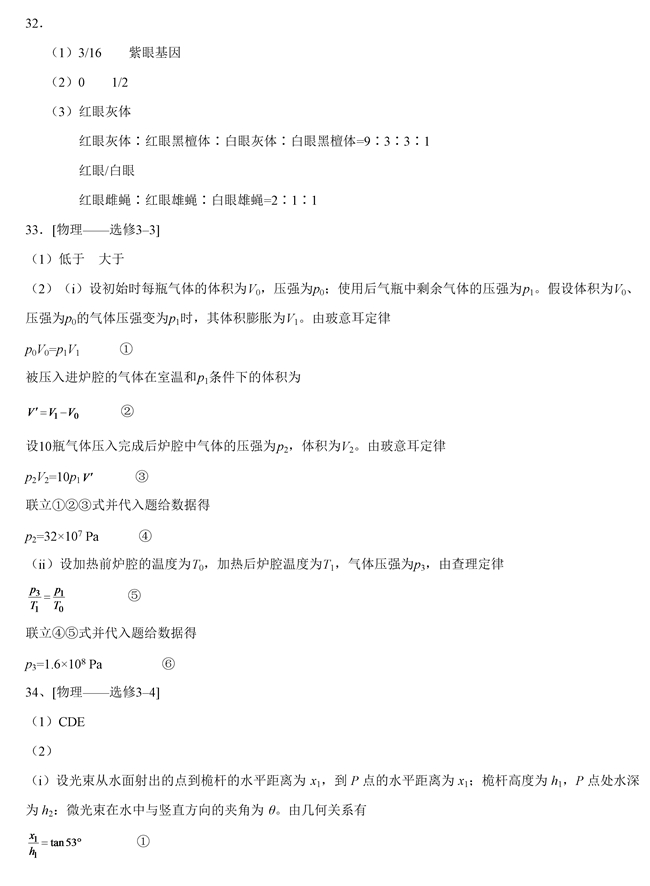 2019年全国卷Ⅰ理综高考试题答案【4】