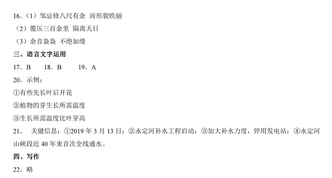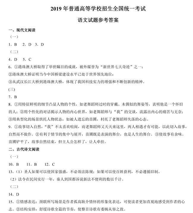 2019年全国卷Ⅱ语文高考试题答案