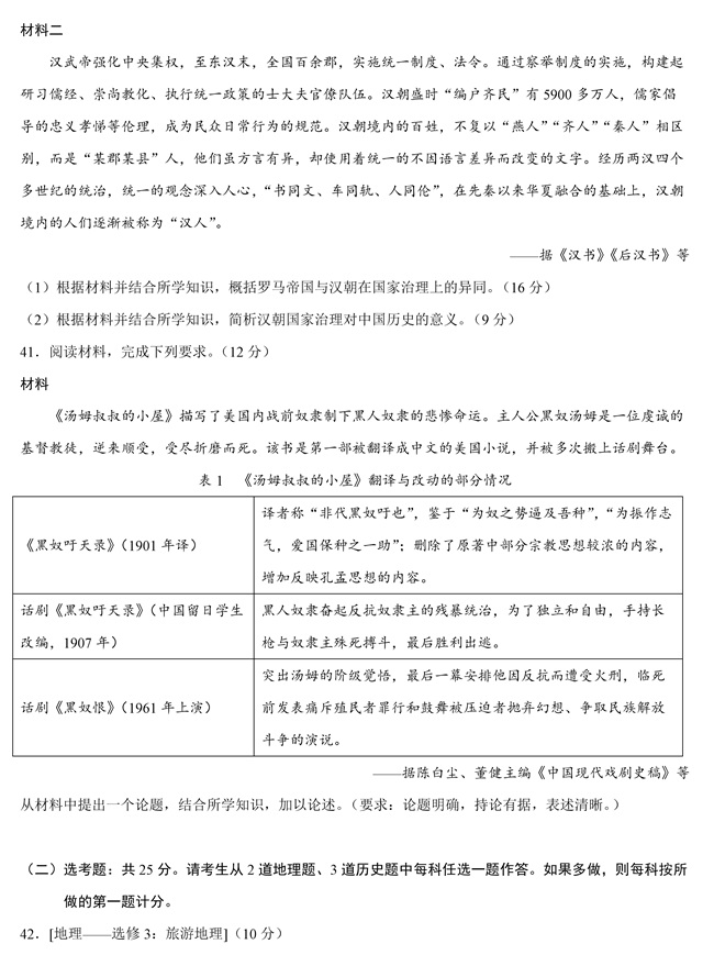 2019年全国卷Ⅲ文综高考试题【12】