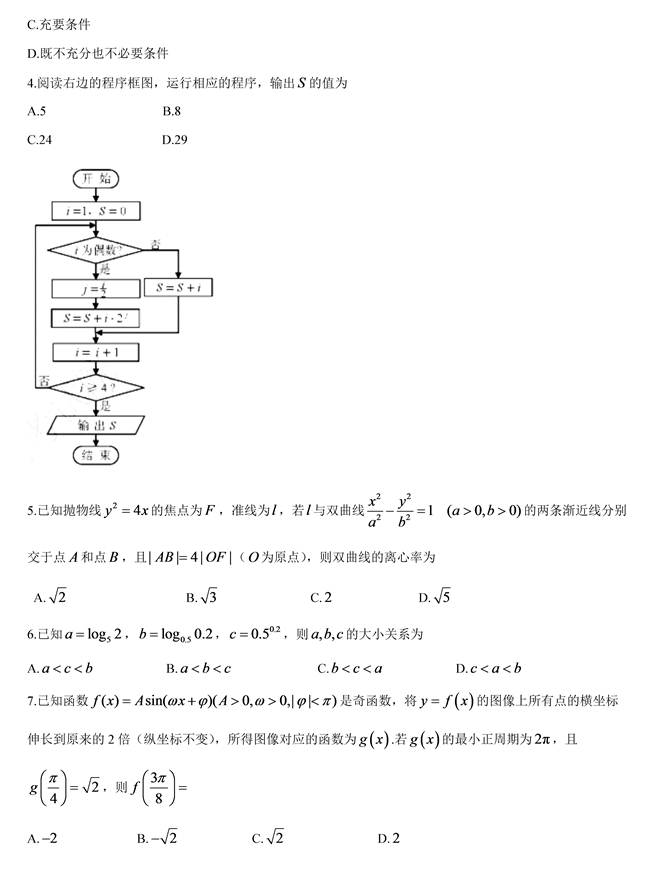 2019年天津卷理数高考试题【2】