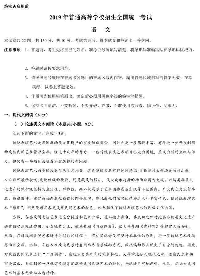 2019年全国卷Ⅲ语文高考试题