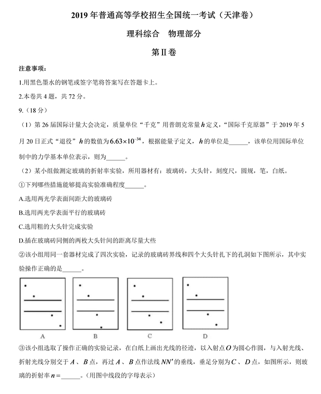 2019年天津卷理综高考试题【4】