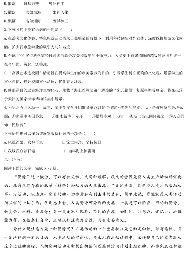 2019年天津卷语文高考试题【2】