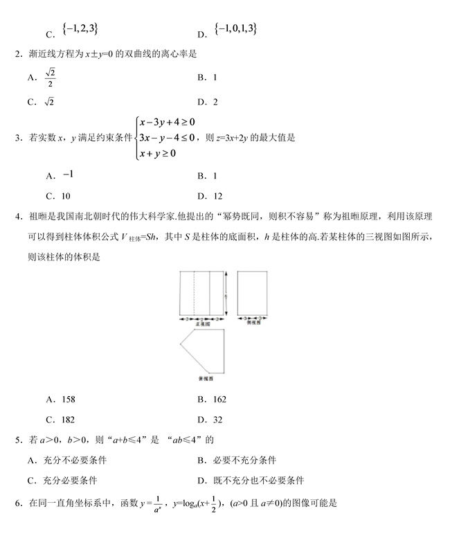 2019年浙江卷数学高考试题【2】