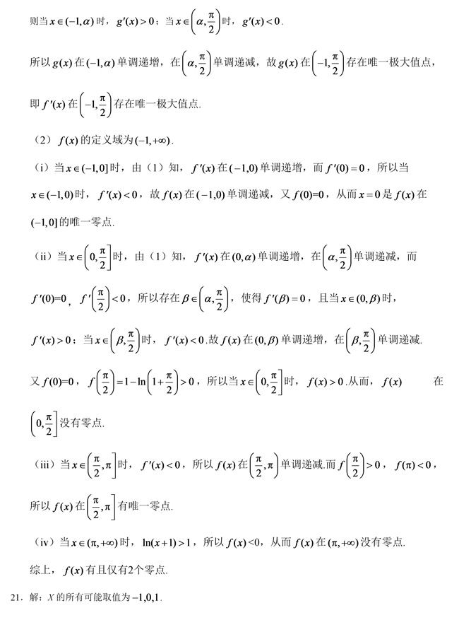 2019年全国卷Ⅰ理科数学高考试题答案【4】