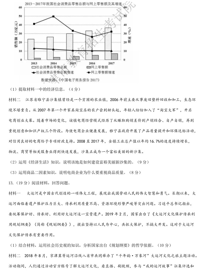 2019年天津卷文综高考试题【5】