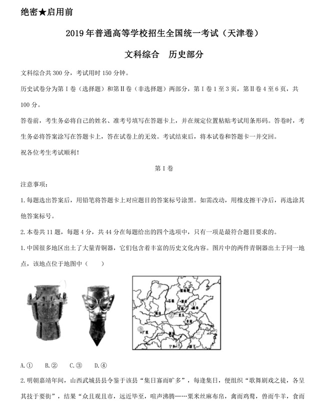2019年天津卷文综高考试题【7】