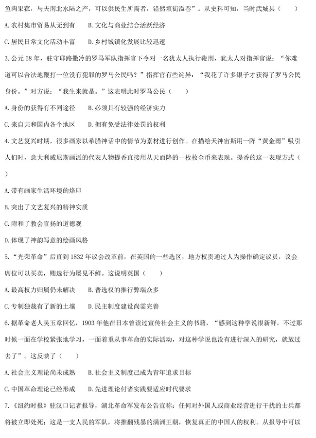 2019年天津卷文综高考试题【8】