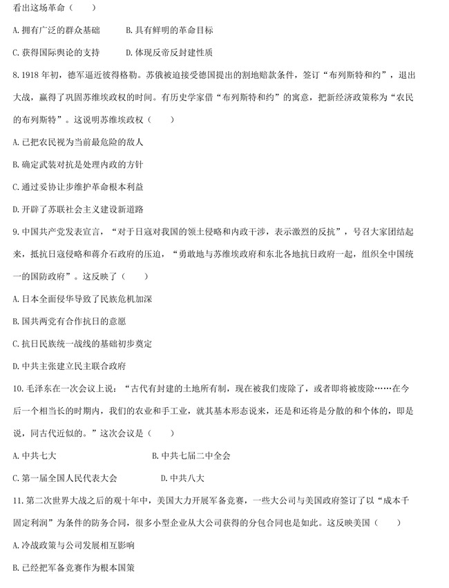 2019年天津卷文综高考试题【9】