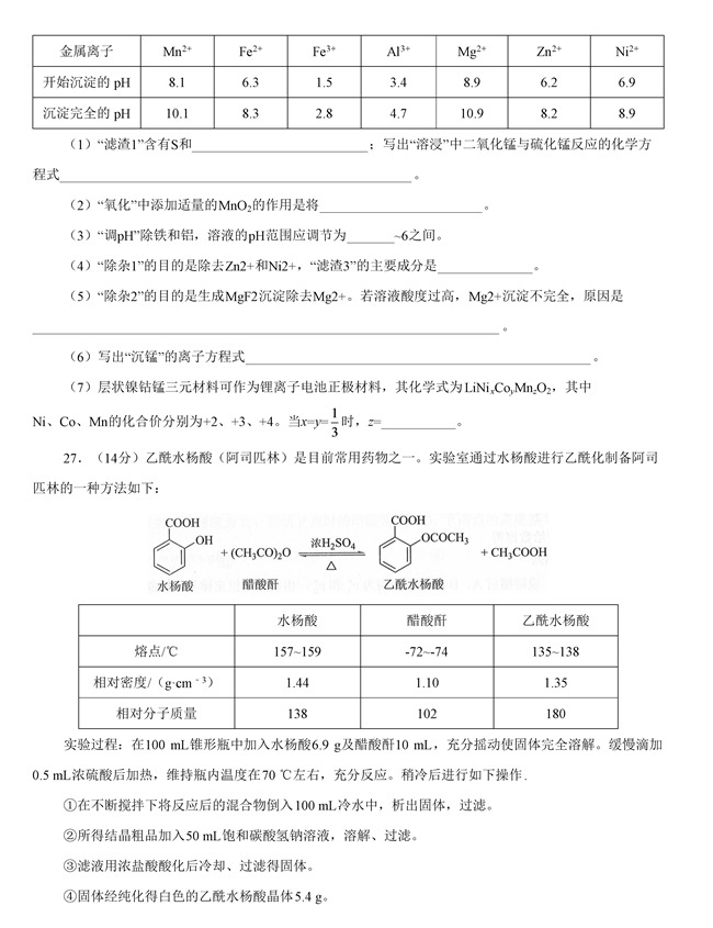 2019年全国卷Ⅲ理综高考试题【9】