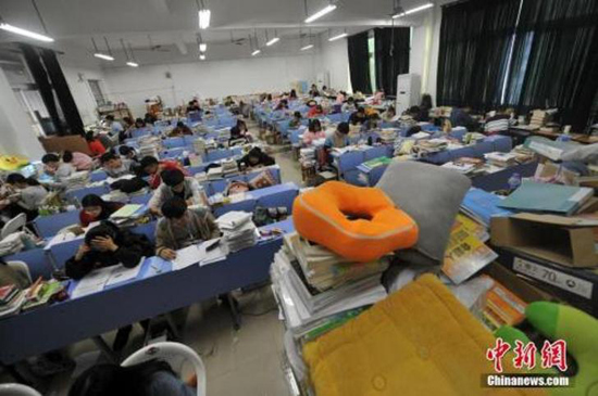 考生们参加考研培训班,备战考研。中新社记者 张勇 摄